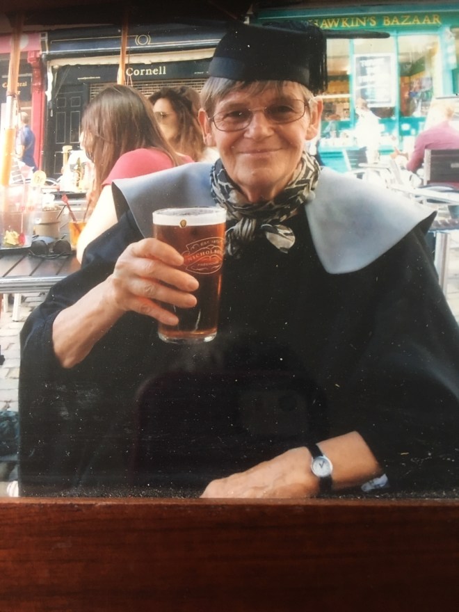 A university accepted me as a student. I went as a full -time student, thinking I was a bit old and I had better do it quickly. It was a BA in social anthropology. Well, I nearly died of fright. There were so many young people that understood the lingo. I had no idea what they were talking about This was academic language. I had not had a constant education going to 15 schools. These A level students seemed so confident and I was lost. I ran away. I got into my car and drove home. I was more comfortable with cooking supper.