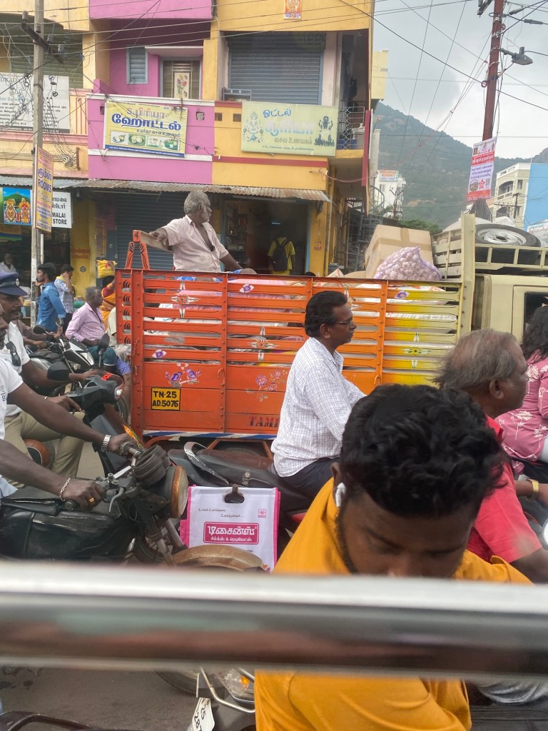 We travel by train to Tiruvannamalai, it is such a lovely experience, we are sleeper fan class, windows open and fans whirring, as vendors pass through.